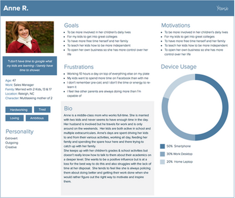 This is our parent persona. She’s busy as all get-out, and wants to help, she just doesn’t always know how.