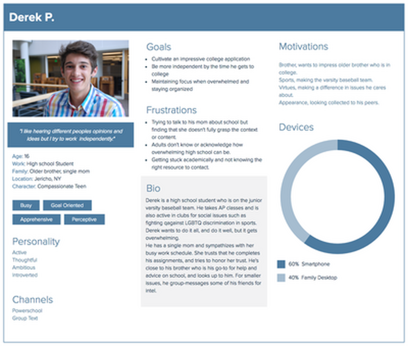 This is Derek, our student persona we developed to design for.
