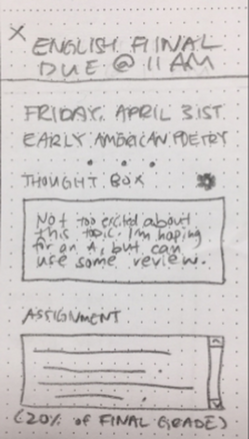 What we found over the course of this analysis process was that the current competitors did not offer a way for a parents and their students to look at upcoming assignments; they focused on reviewing events, rathering than planning ahead. Some excellent products also focused too closely on the interaction between teacher and student. This process was concurrent with our user interviews and we felt we’d found our way in.