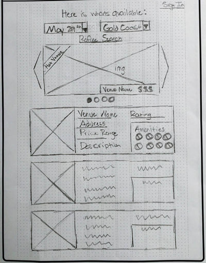 More paper sketches before beginning digital wireframes